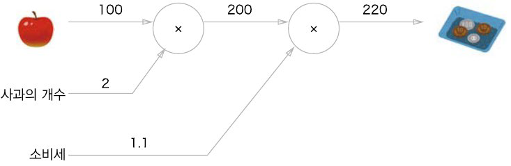 - 사과 가격에 대한 미분: 2.2 (사과 가격이 1원 오르면 총액이 2.2원 증가)