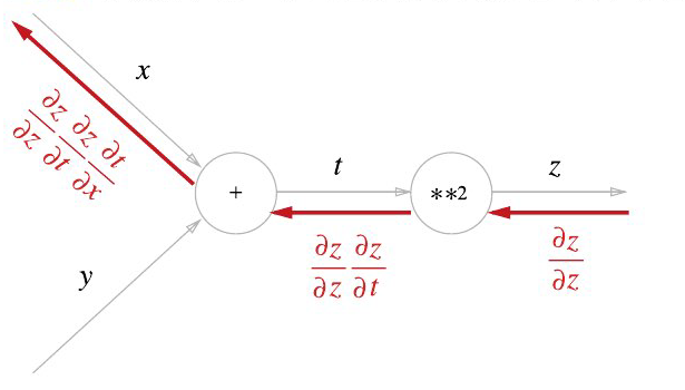 - 가장 왼쪽의 역전파 신호는 최종적으로 $\frac{\partial z}{\partial x}$가 된다