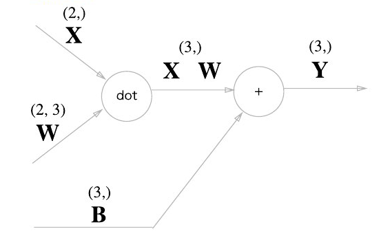 Affine 계층의 계산 그래프: 변수가 행렬임에 주의.