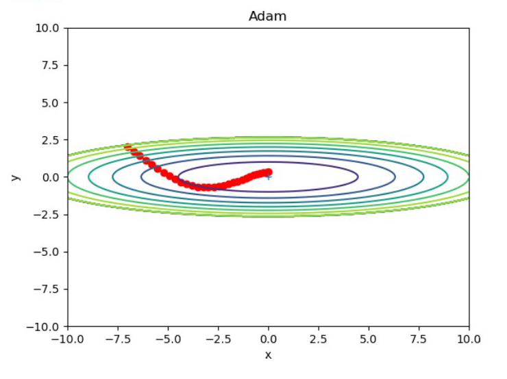 - Adam: 모멘텀과 AdaGrad의 장점을 결합