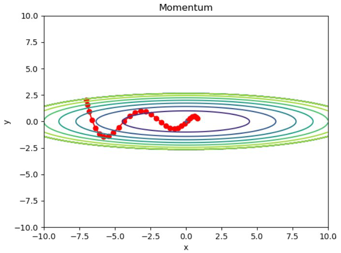 - SGD보다 지그재그 움직임이 현저히 감소